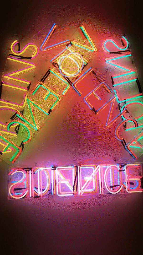 Bruce used inspirations from the 'environment around him' such as the neon signs found in the likes of local butcher shops and barbers to inform his material use in his work. For the exploration of research for this project I would like to gather inspiration from the materials that I find intriguing in my surrounding environment to inform the materials for sample making and materials to just 'play around with'. I feel that by allowing the materials that I use to be informative to the artwork will enrich my concept and overall outcome.