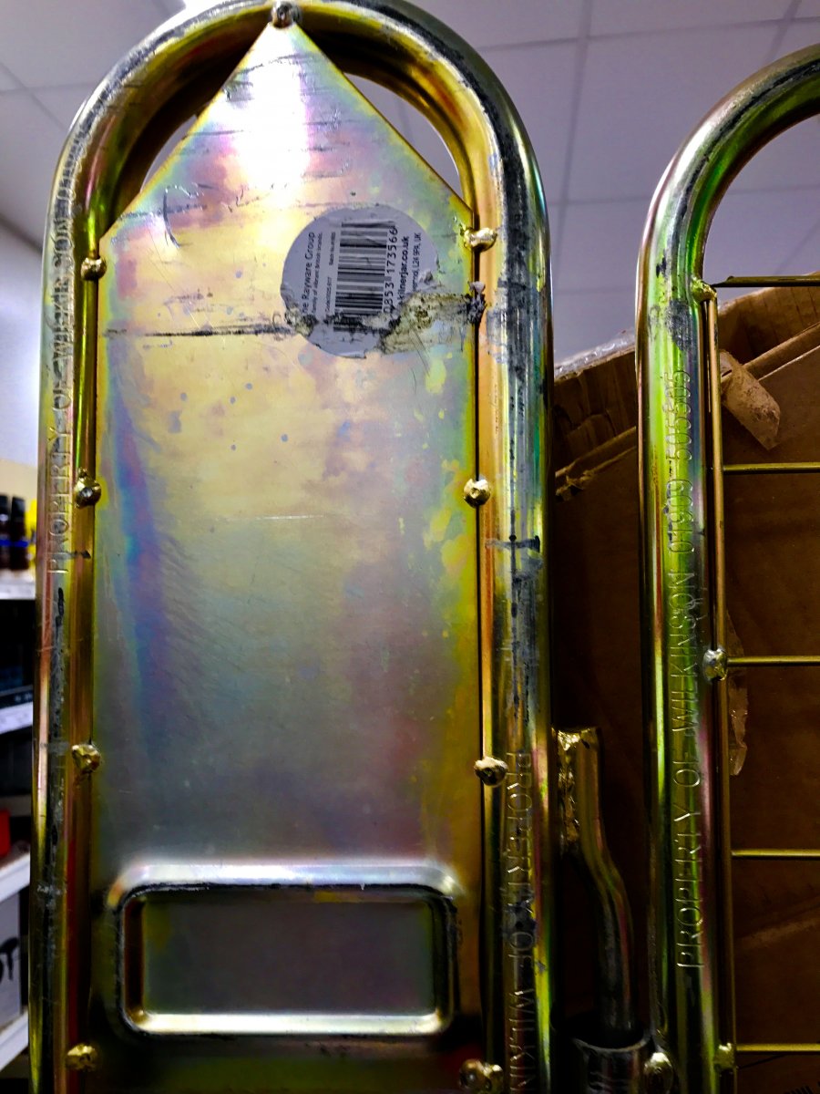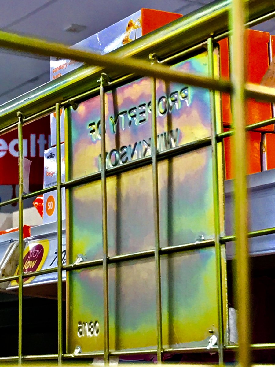 I came across this trolly in a shop which I realised had given off a colourful stained effect. I managed to photograph the trolly in contact with the light to give this effect. I love how there is this strong yellowy, copper undertone mixed with the purples, turquioses and pinks of the effect. This copper undertone created the alarming yellows and neon greens that are seen towards the areas of the trolly where the light is less visable.