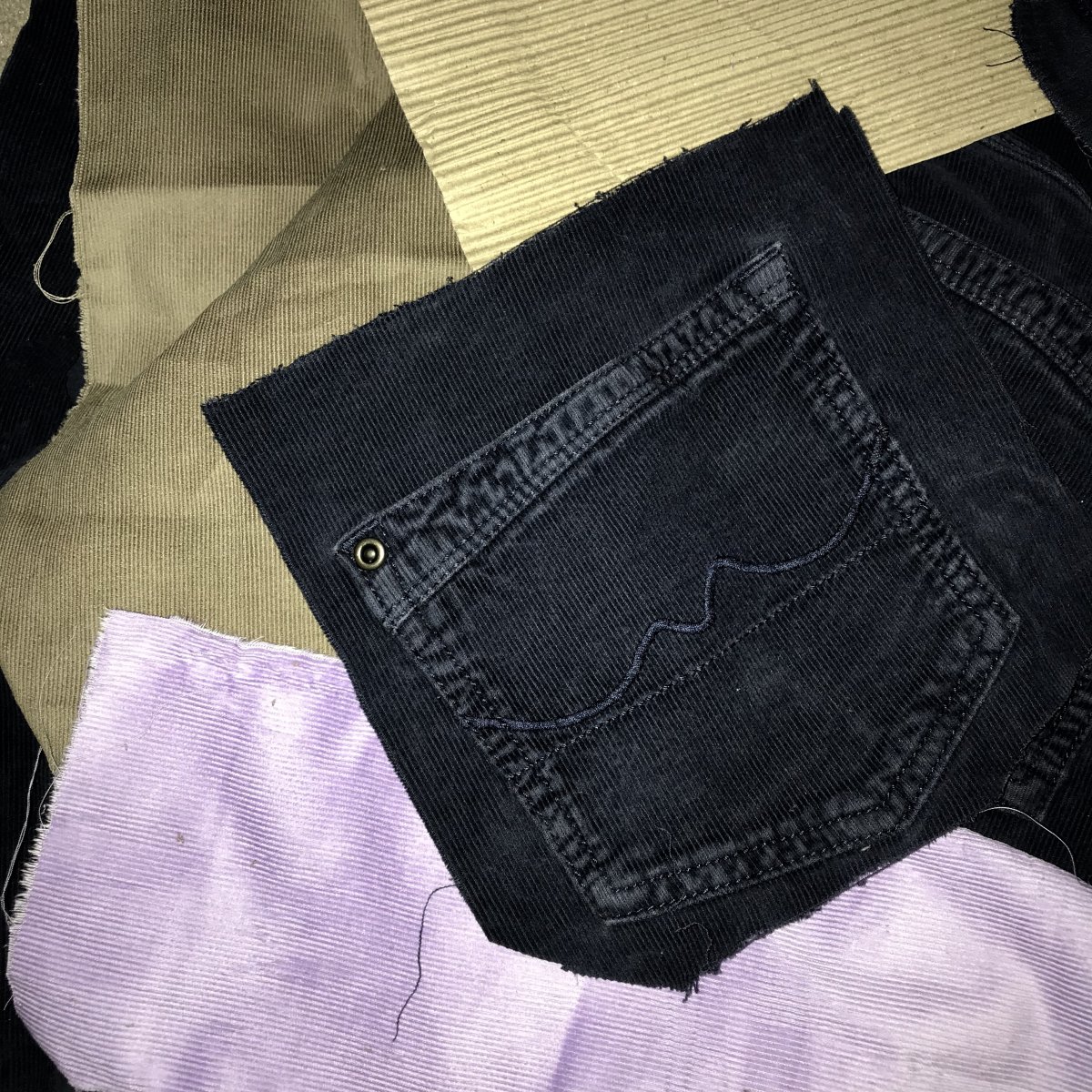 - Inspired by the repaired stitches and patches on the trousers. I love how the patches and stitches are not of the same colour as the original trousers, suggests a lack of consideration to the appearance of the garment... worn not was a piece of 'high fashion' but rather for 'real use'.