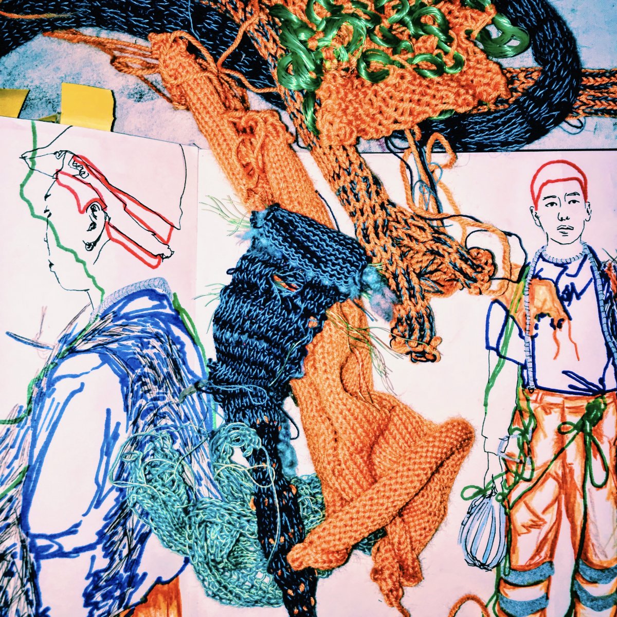- layering of the vertical lines in layers of clothes