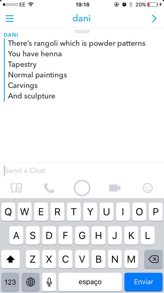SCREEN SHOTS - My Indian friend messaged me some ideas of Traditional Indian crafts and artists techniques that I could possibly research into for use in this project.