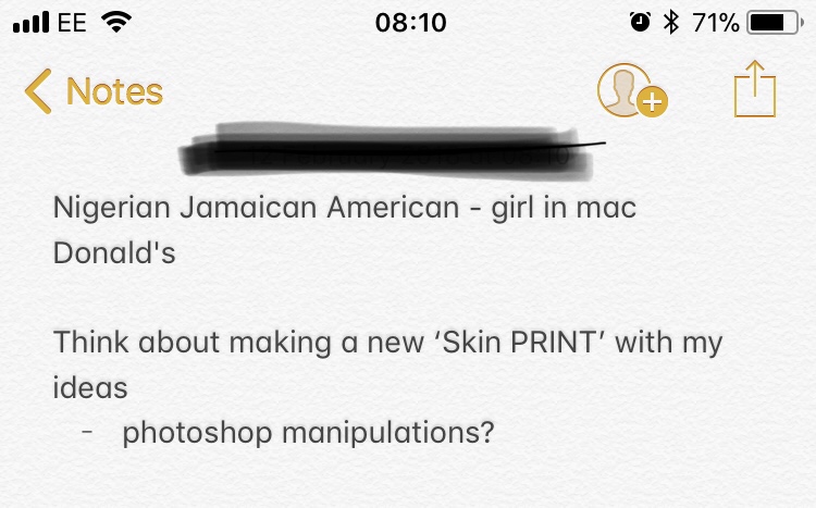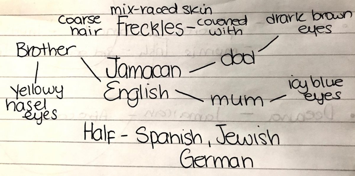I met an incredibly unique looking lady at my work - I asked about her cultural backgrounds I knew she had to be mixed.. she told me about her family and their appearance. This inspires me to use the idea of mixed identity and aspects of a persons physical appearance to inspire the direction of my work.