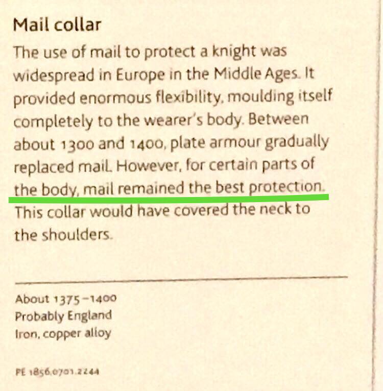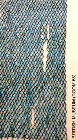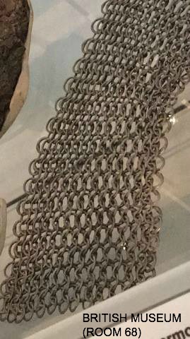 This is a sample from an Anglo-Saxon iron mail coat from the1600s. The knitted style mail was popular due to its strong structure and resistance to battle. The solider's would were this knitted mail coat to cover their bodies as a form of protection.