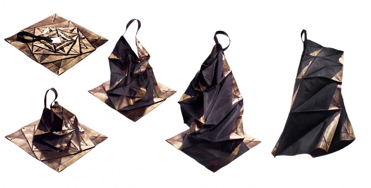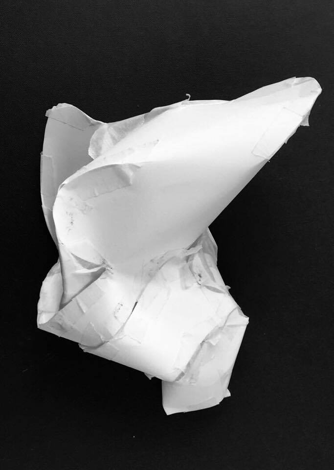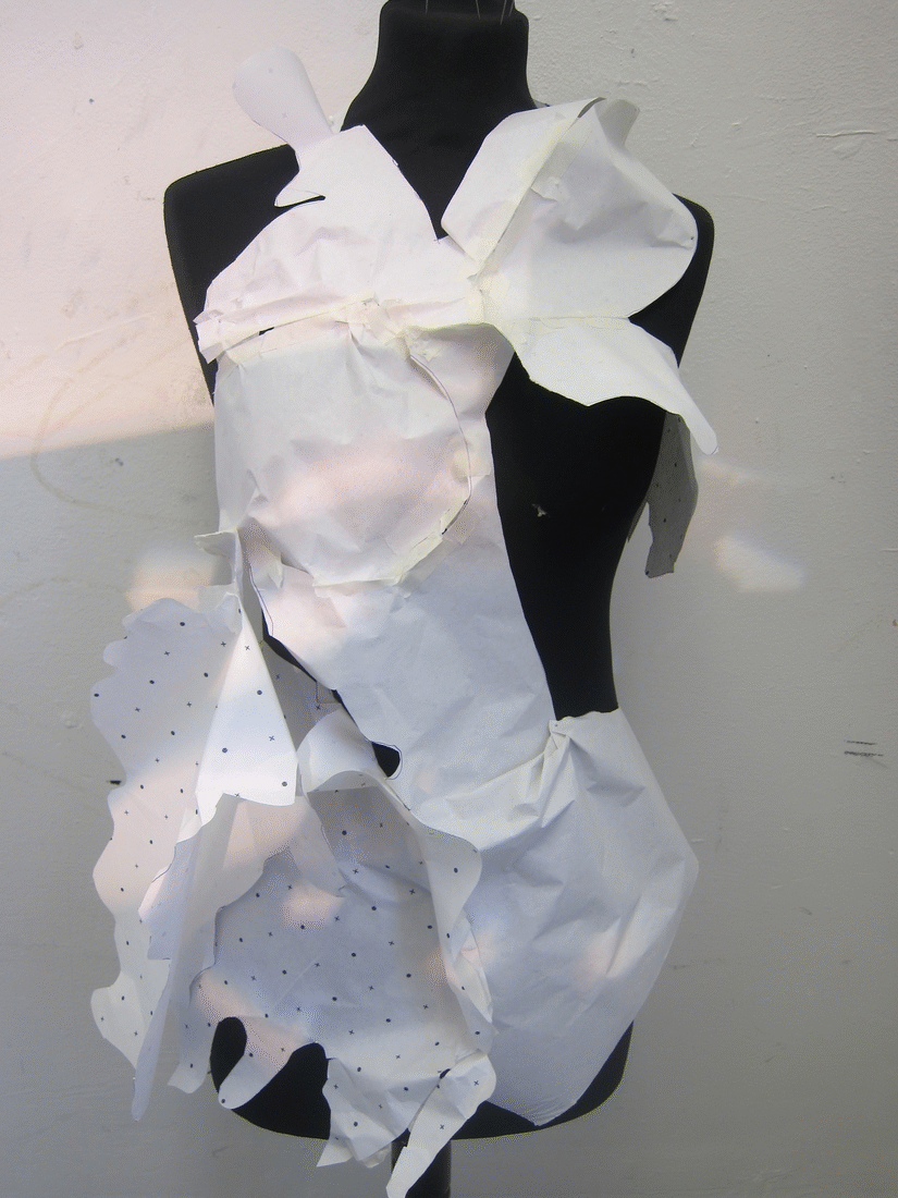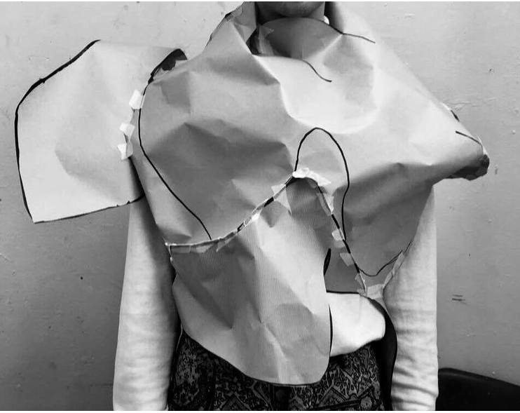 Looking back at my photographs of the paper garment, I decided I wanted to use photoshop to edit them into black and white and raise the contrast. I believe by doing this I was able to enhance the shapes and 3D elements of my garment and this would allow me to think of design developments.