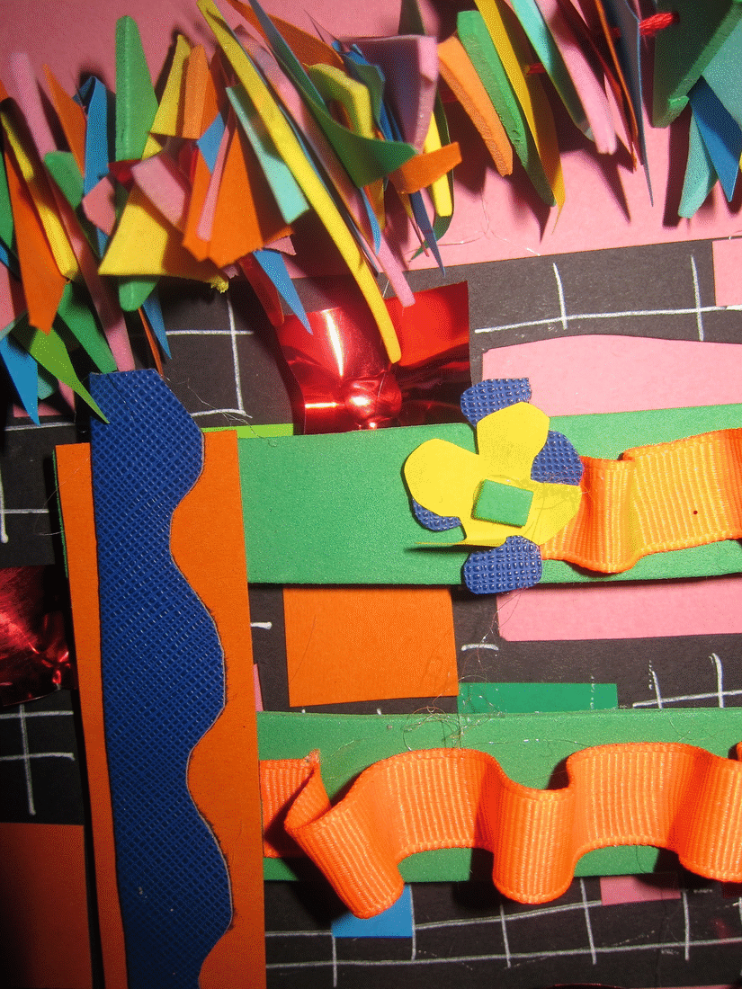 "Booth creates drawings that are multi layered collages bursting with colour and texture."