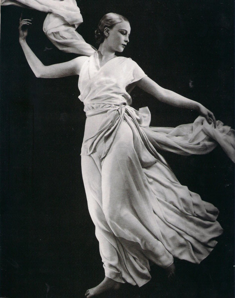 Influenced by the modern dances of Isadora Duncan, Vionnet created designs that showed off a woman's natural shape. Like Duncan, Vionnet was inspired by ancient Greek art, in which garments appear to float freely around the body rather than distort or mold its shape.