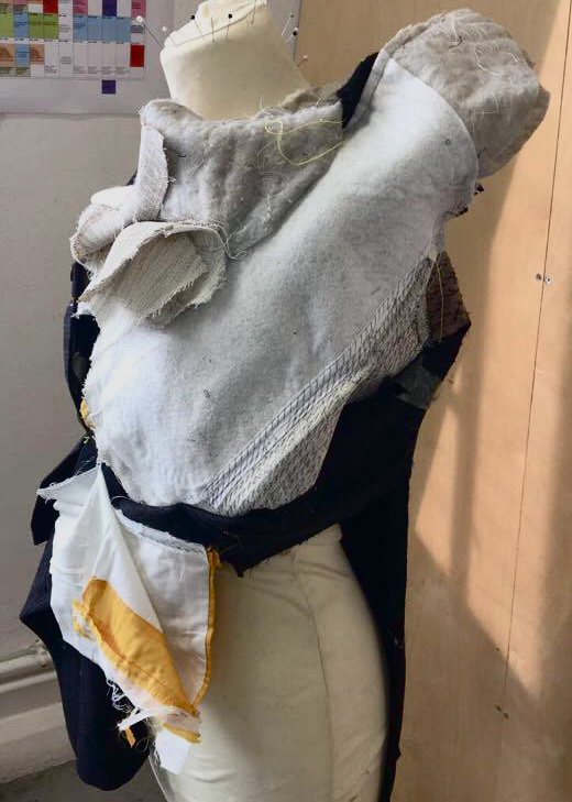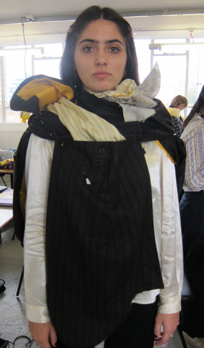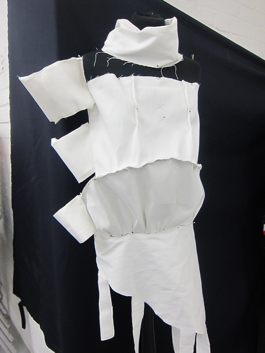 Looking at the shapes I gathered from my observational drawings in my surroundings I decided to create a three dimensional paper form. By transforming two dimensional shapes into a three dimensional form, this has helped me think about abstract construction outside of fashion and the body. To take this idea further I can use this information to develop my construction with three dimensional shapes but this time concentrating on the body.