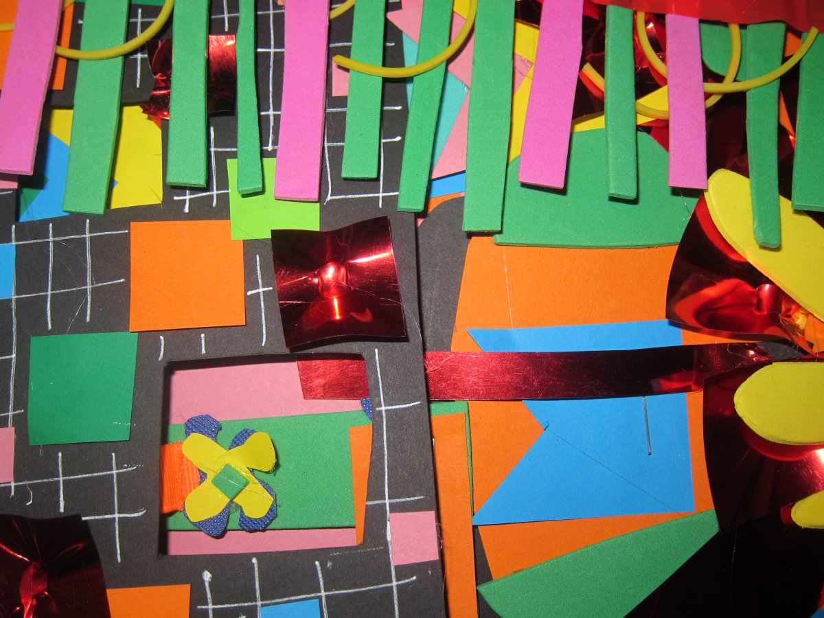 In class we were asked to create our interpretation of the three primary colours RED, YELLOW and BLUE onto A5 pieces of paper. Whilst making these, we were asked to consider the tone, texture and feel of these three colours. I started by opening a magazine and tearing out any pieces of the page that my brain would associate with RED, YELLOW or BLUE. I found this to be a helpful starting point for my A5 samples as I could look at the different tones of the three colours I found and this inspired me to introduce more elements of collage, painting and event glitter to my A5 pieces. These would later be used as material for cutting and collaging to make print samples inspired by the shapes found in our traditional dress and/or functional object.