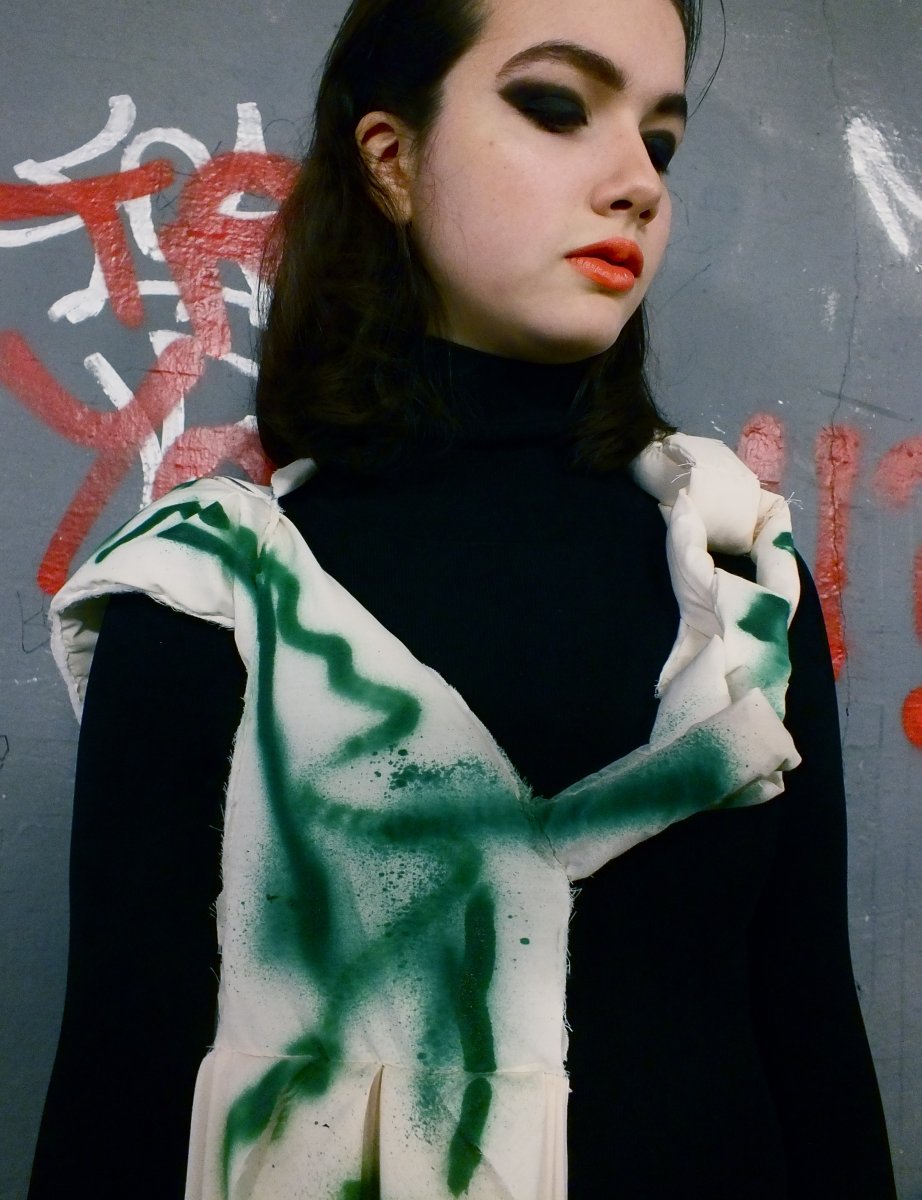 This problem I encountered made me realised that the female body didn't allow linear shapes to sit structurally on their body with a thin fabric like the outer layer of my jacket. If I had more time to develop this final design I would have incorporated layer of Neoprene felt to keep the structure in place.