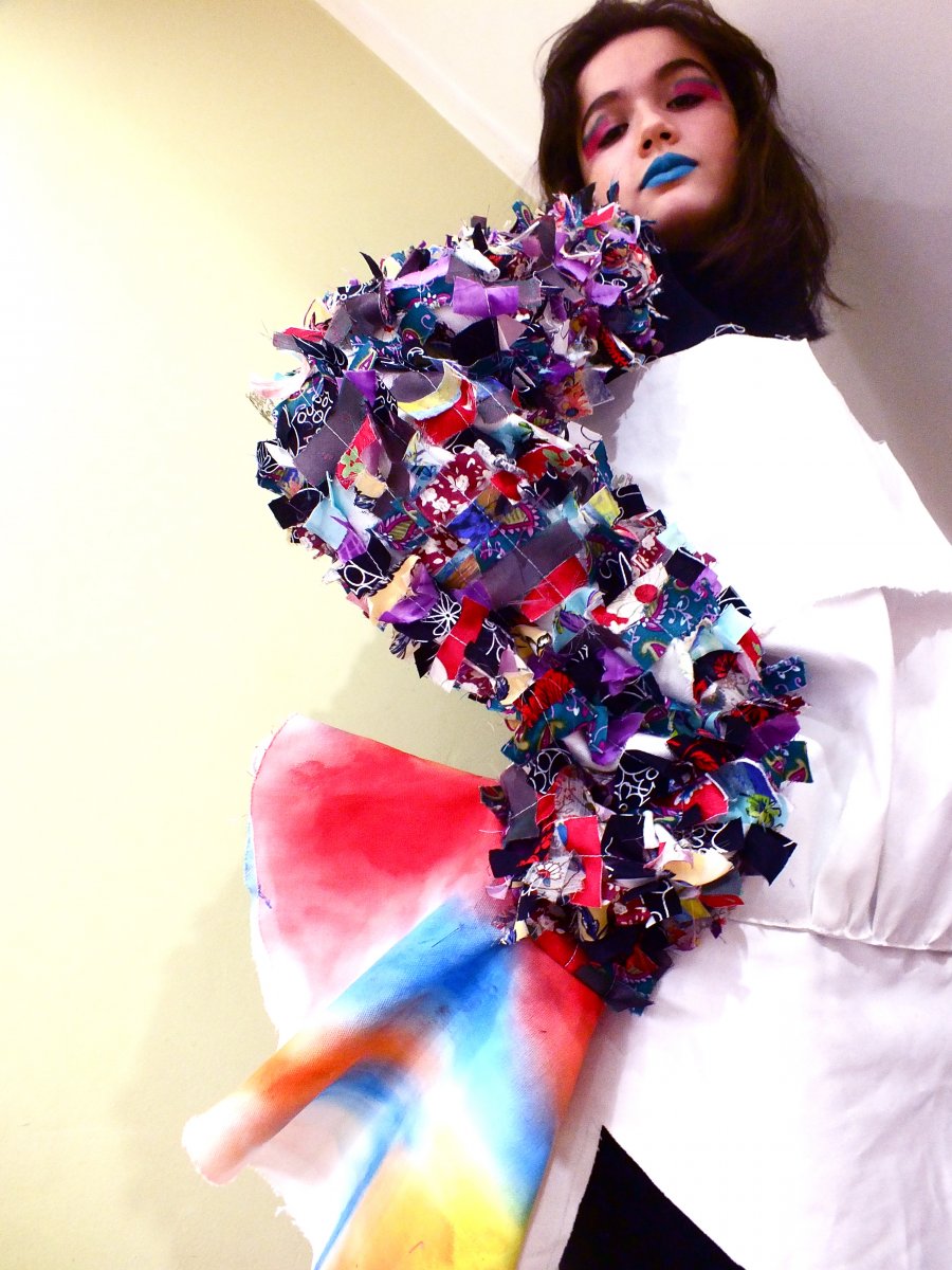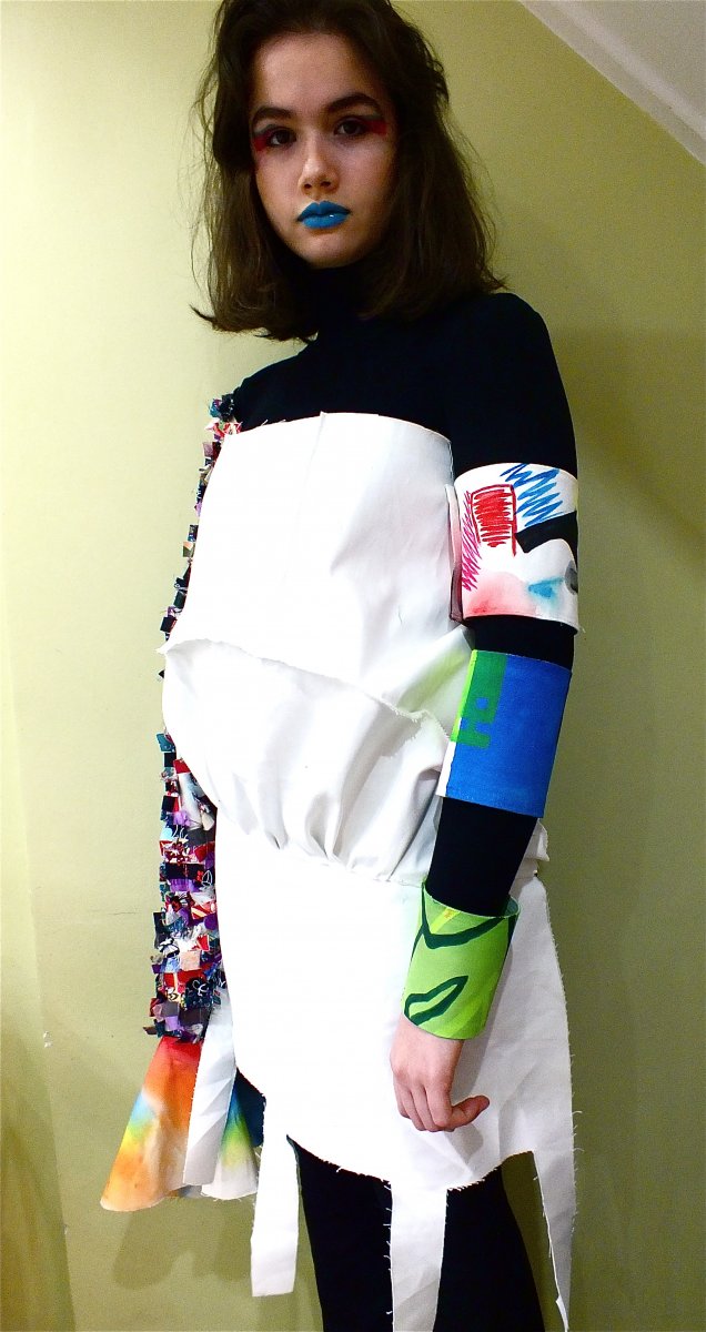 "I like the idea of putting a print and textiles onto your paper garment because it is boring only white"